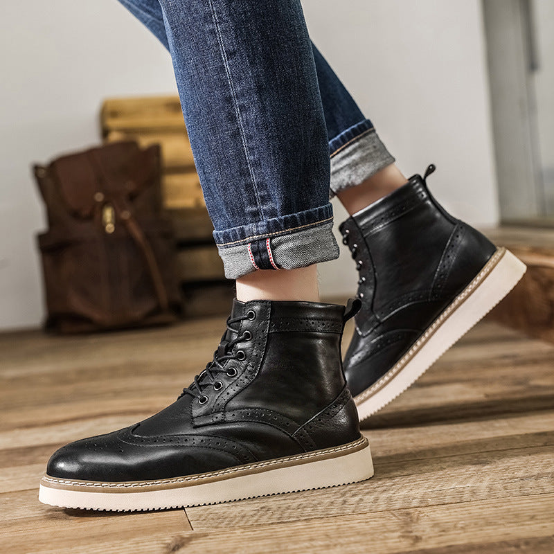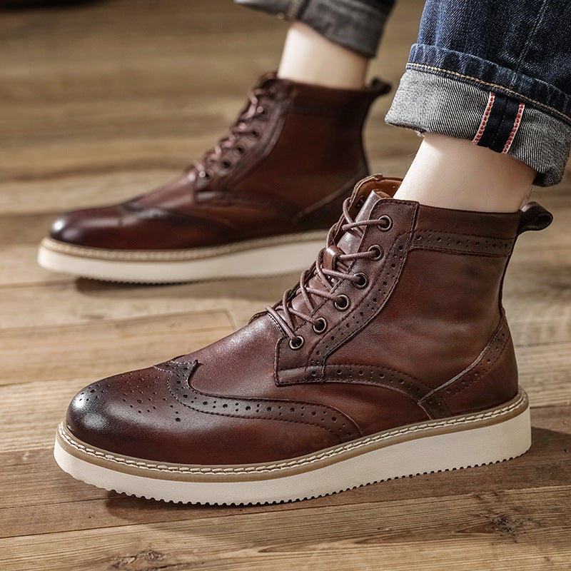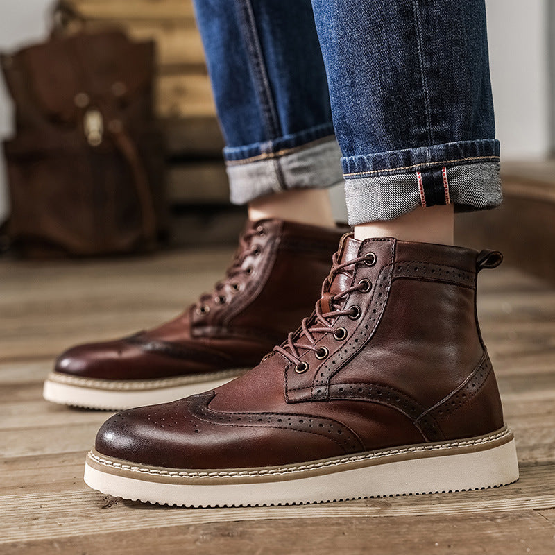 Crafted from genuine leather and designed with a rugged yet refined style, these boots feature sophisticated brogue detailing and are built to last. Their rubber soles provide cushioning and support for unmatched comfort that lasts all day.