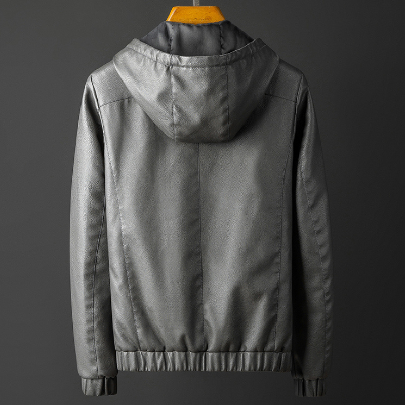 Crafted from supple premium leather, this lightweight hooded jacket offers a modern twist on timeless outerwear. Featuring a sleek silhouette with ribbed cuffs and hem, it combines elevated style with everyday versatility for a polished yet casual look.