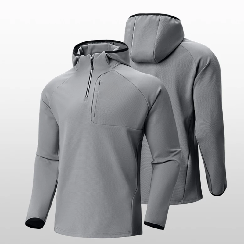 Designed with a durable stretch-knit fabric, this hoodie delivers lightweight insulation and superior breathability for your most active days. Featuring a half-zip closure and integrated hood, it provides adaptable coverage whether you're on the trail or in the city.