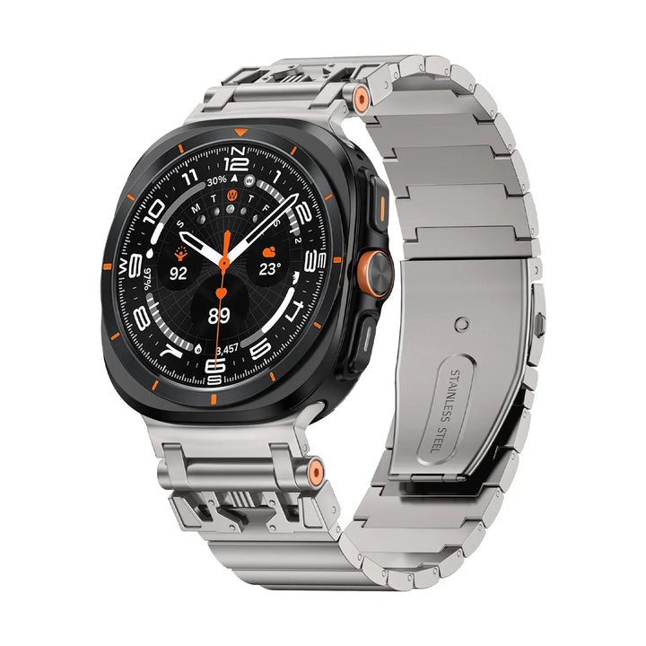 Refine your look with this Galaxy Watch Ultra Band, the ultimate upgrade that brings together a premium stainless steel band with mecha lugs. It’s an everyday essential that promises to elevate your Galaxy Watch Ultra to luxury status.