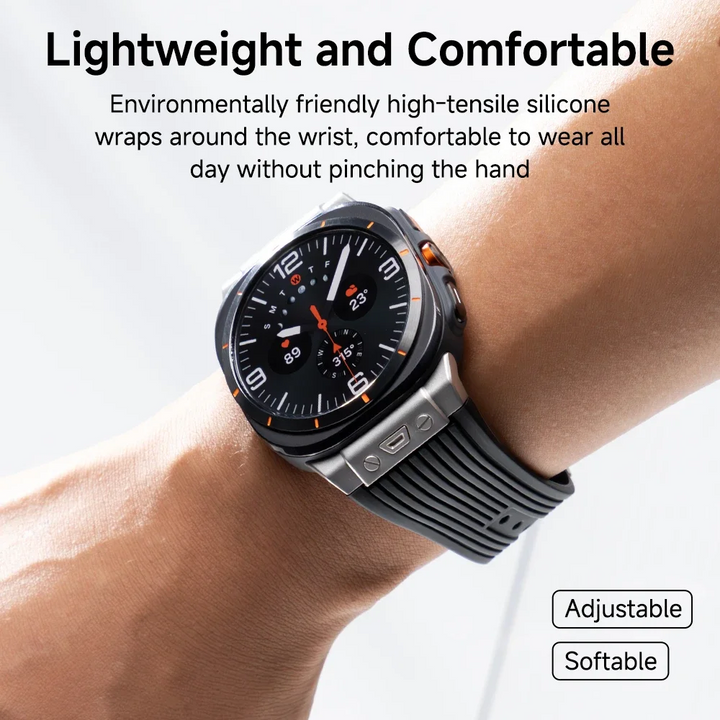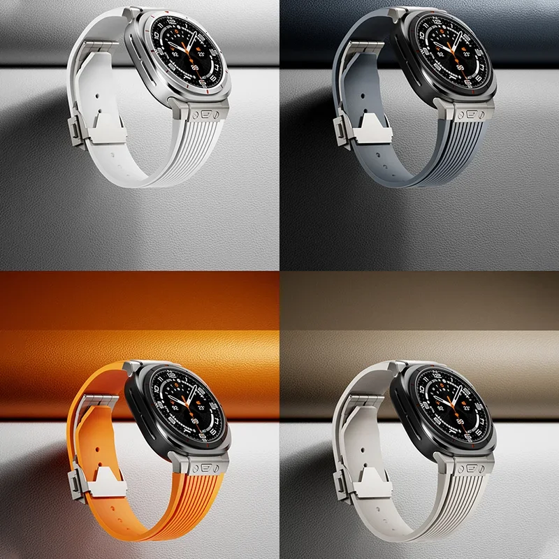 Refine your look with this Galaxy Watch Ultra band, the ultimate upgrade that brings together our premium streamlined silicone band with a sturdy titanium clasp. It’s an everyday essential that promises to elevate your Apple Watch to luxury status.