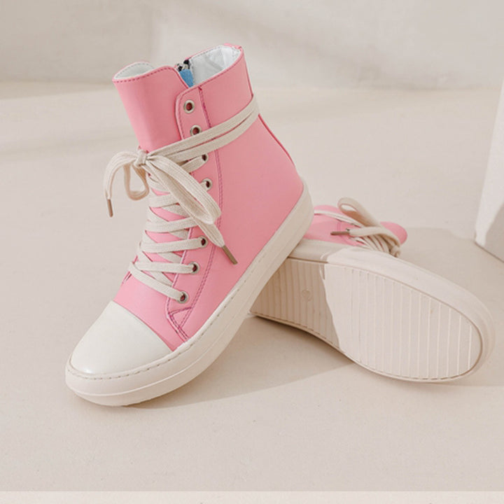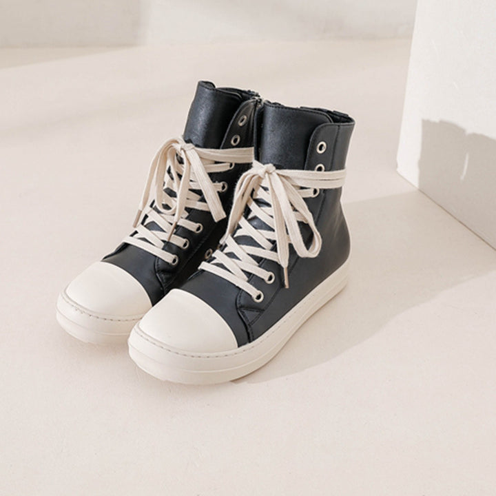 Elevate your everyday look with these high-top sneakers crafted from premium leather and finished with a bold, contrasting cap toe. Featuring wide cotton laces and a convenient side zipper, they blend effortless style with all-day comfort for any adventure.